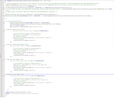 Downloadable link to PR and JS file. https://drive.google.com/open?id=0B52024rQ9Hc0ZFg0bnYyTHM4bTg Explanation of Code : 1. Define and Include 3rd party files define("siebel/custom/SpeechConvertor", ["siebel/phyrenderer","siebel/custom/responsivevoice"] , all the JS files that code refer need to be defined here. Since we are using speak() method that is defined in file responsivevoice.js so we need to include this. Also either we can directly call file by refering its web location ["siebel/phyrenderer","//code.responsivevoice.org/responsivevoice.js"] or by locally saving file under siebel/custom folder. 2. Creation of button that will call method speak var id1 = this.GetPM().Get("GetFullId") + '-siebui-cust-ActivateMember-btn'; //Custom Button that will trigger speech API var Speak = "<button " + "id= '" + id1 + "' " + "class= 'siebui-ctrl-btn appletButton' " + "aria-label=Speak " + "type=\"button\" " + "data-display=\"Speak\" " + "title=Speak " + ">" + "Speak" + "</button>"; $("#s_" + this.GetPM().Get("GetFullId") + "_div").find(".AppletMenu").append(Speak); 3. Function that gets value of a selected field and calls speak method $('button[data-display="Speak"]').click(function(){ var controls = pm.Get( "GetControls" ); var cntrl = controls[ "Abstract" ]; var Status = pm.ExecuteMethod( "GetFieldValue", cntrl ); //alert(Status); responsiveVoice.speak( Status ); }); Working Demonstration of this is shown in below video.